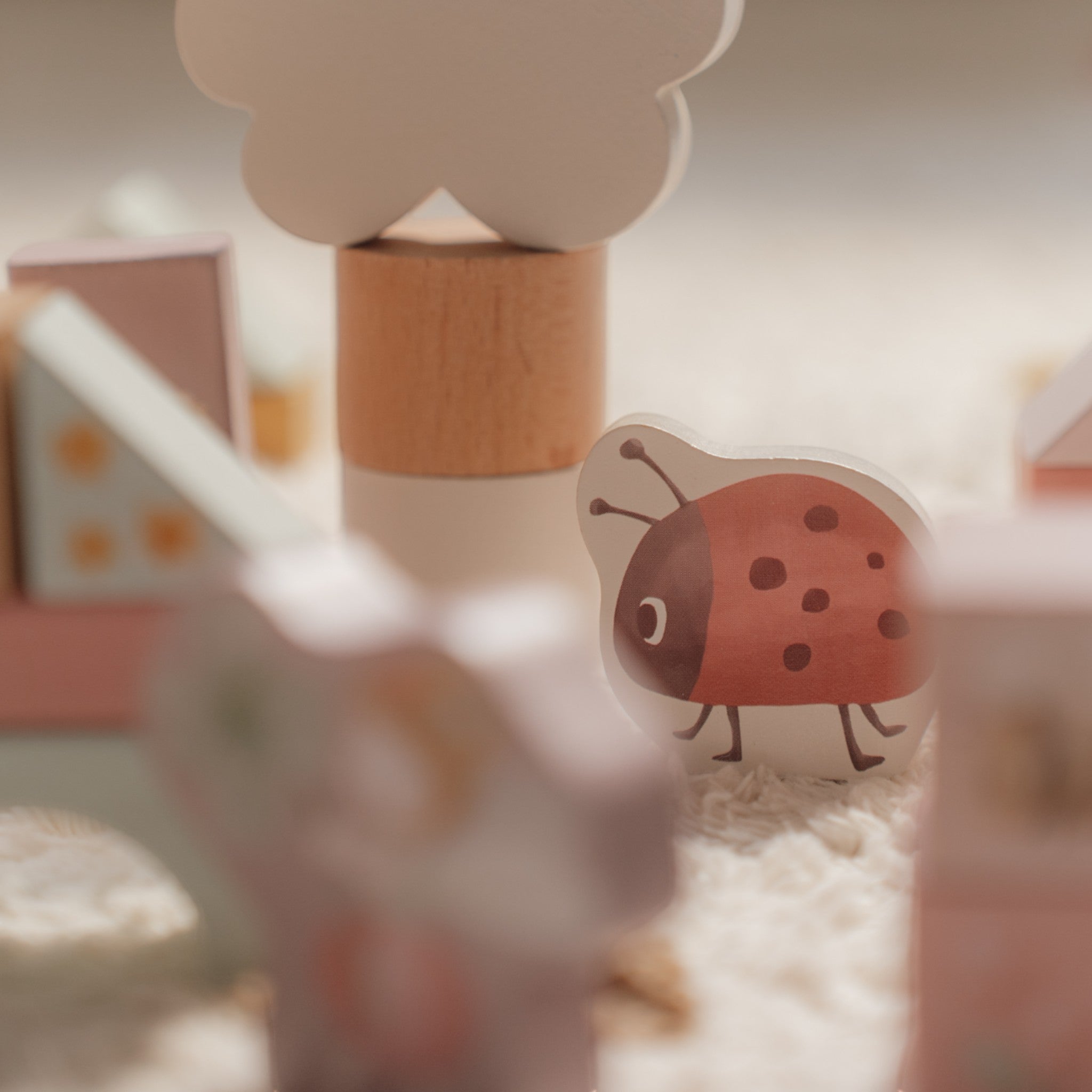 Αυτό το σετ περιέχει τουλάχιστον 50 ξύλινα τουβλάκια σε διάφορα σχήματα και μεγέθη. Στοιβάξτε τα τουβλάκια για να δημιουργήσετε τον πιο όμορφο κήπο με λουλουδάκια και νεραϊδούλες.